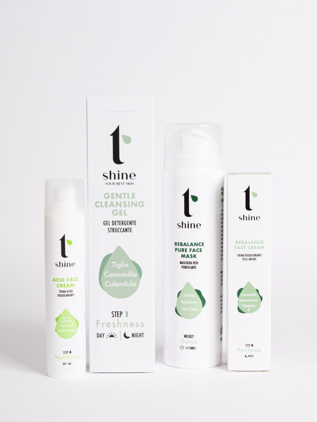 Il primo step è il Gentle CLEANSING Gel per detergere rispettando il ph della tua pelle! Secondo step è Rebalance Face Mask per riequilibrare la tua pelle; il terzo step è completare alternando l’Acid Face Cream e la Rebalance Face Cream per nutrire nel modo più corretto la tua pelle, rispettando le sue esigenze. -